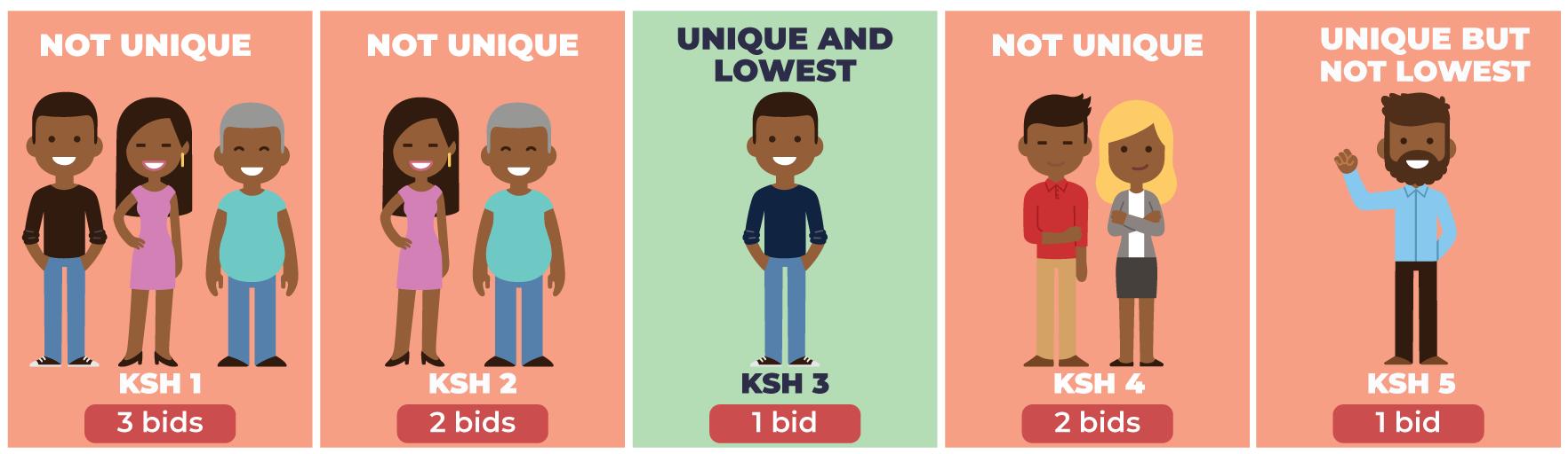 If your bid is unique and is the lowest among unique bids, take home the product!